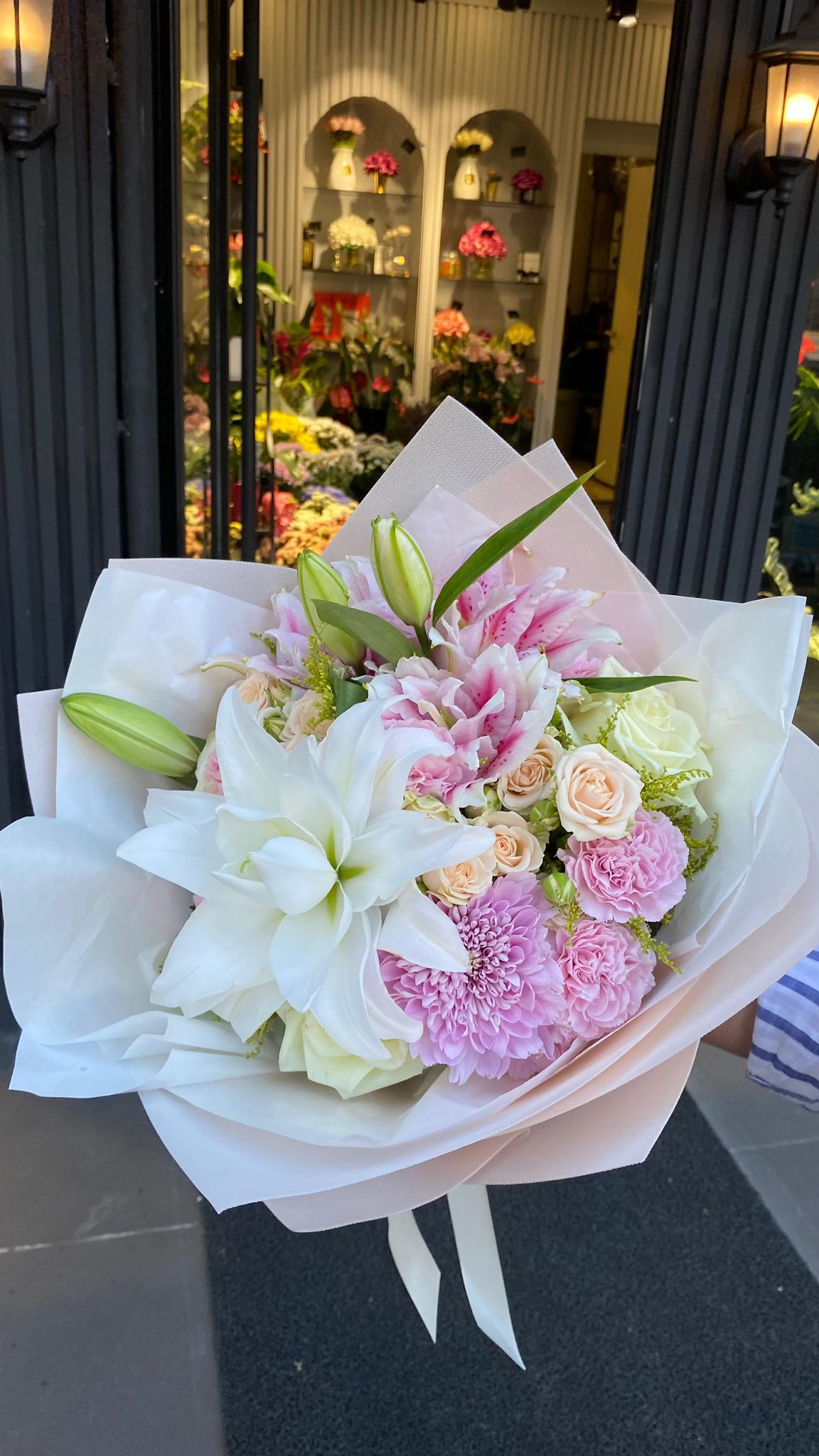 A Kalite Hollanda Üretimi Katmerli Lilyum, Çardak Güller ve Anastasyalar Buketi